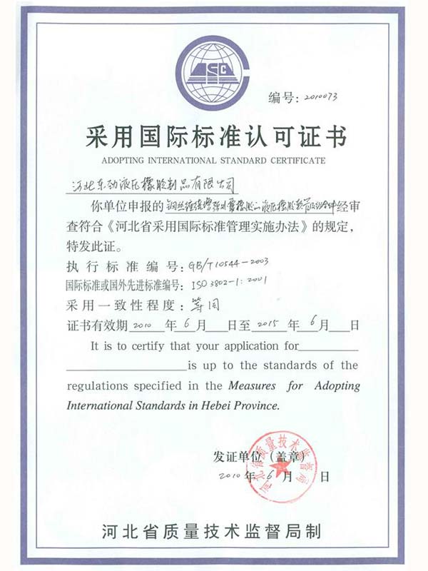 • 鋼絲編織管采用國際標準認可認可證書